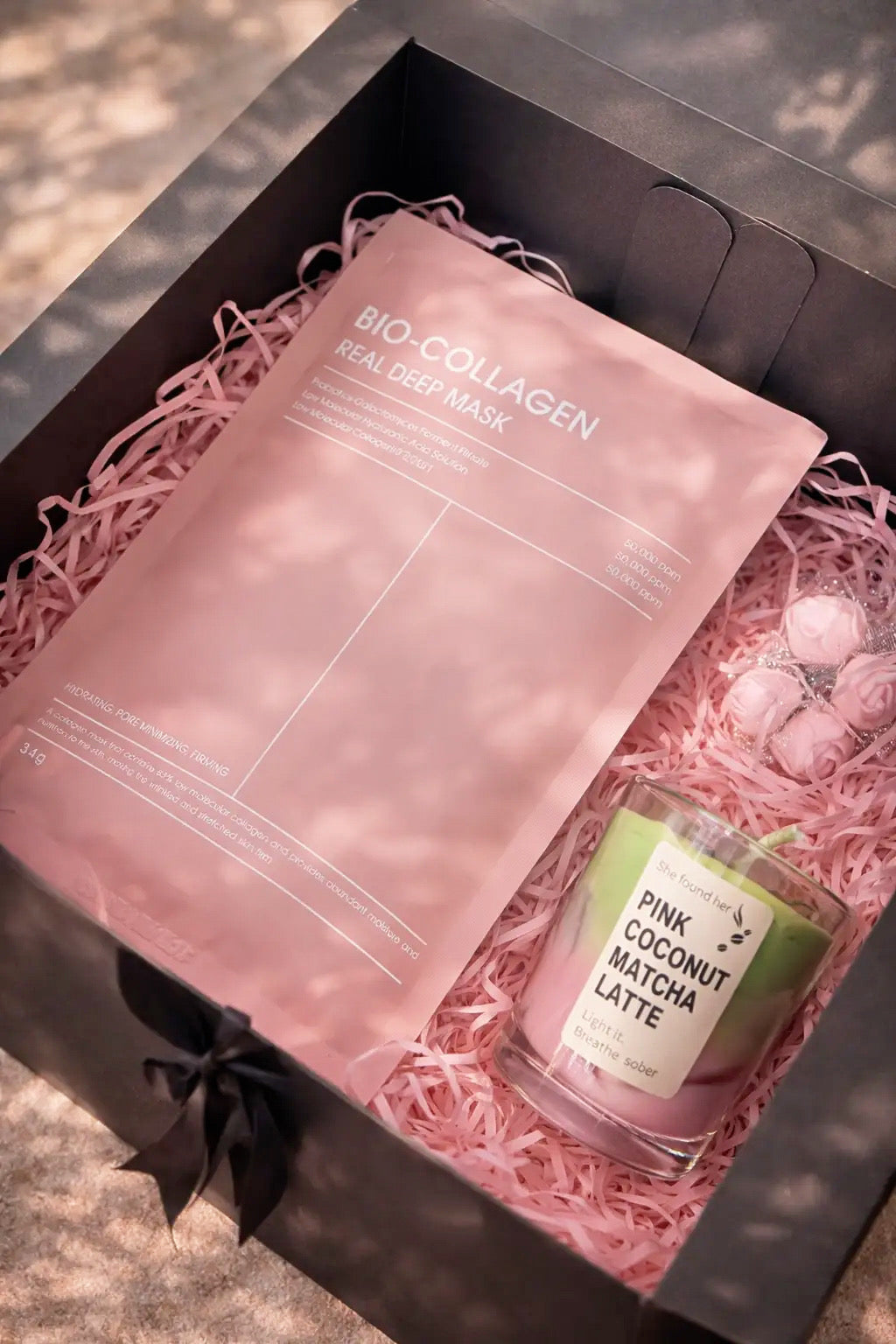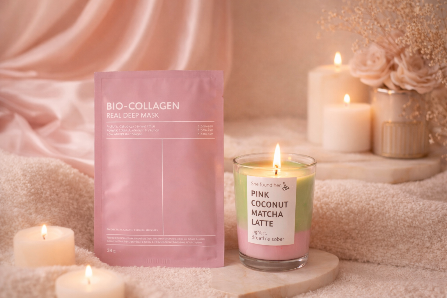 5 masques au collagène + une bougie parfumée pour recréer l'expérience spa chez vous.
